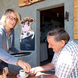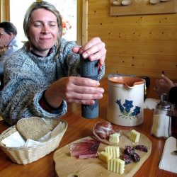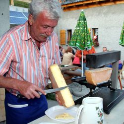 - polenta avec un bon ragoût (selon le stock : bœuf Hérens ou porc d’alpage)